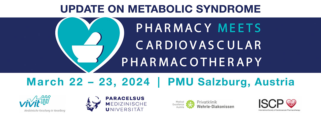 It is our pleasure to announce that registrations are open to our next in-person congress titled “Pharmacy Meets Cardiovascular Pharmacotherapy- An Update on Metabolic Syndrome”. This 2-day congress will take place on 22nd and 23rd March 2024 in Salzburg, Austria and it is organised jointly by VIVIT (Vorarlberg Institute for Vascular Investigation and Treatment), PMU Salzburg University and ISCP.