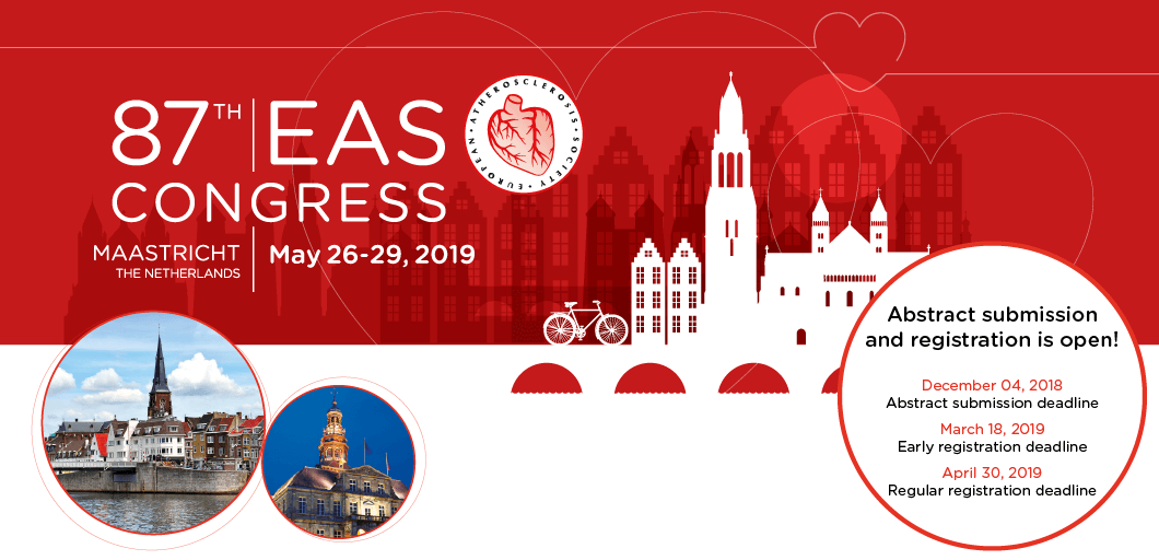 The European Atherosclerosis Society (EAS) and the Dutch Atherosclerosis Society invite you to the 87th EAS Congress in the charming and historic city of Maastricht. The meeting will explore the latest developments in research into the causes of atherosclerosis and related vascular disease, and how these may affect the clinical guidelines for diagnosis and treatment. Clinicians and basic researchers studying atherosclerosis and related vascular disease are welcome to submit an abstract, to present their findings to the international scientific community at EAS 2019.